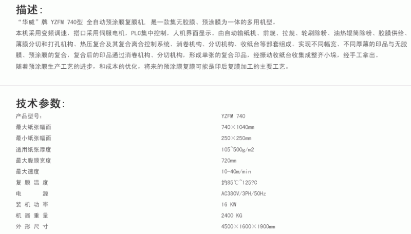 YZFM740自動(dòng)預(yù)涂膜覆膜機(jī)