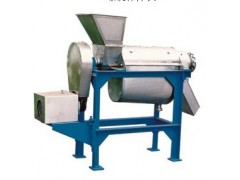 原料加入進料斗中,在螺旋的推進下受壓,其壓榨的汁液通過過濾網流入底部的盛汁器,而廢料則通過螺旋及調壓頭的錐形部分之間形成的空隙排出,調壓頭沿軸向的移動可調整空隙的大小。用手順時針(從設備的出渣槽向進料斗看)轉運手輪軸承座時,調壓頭向左,空隙即縮小,反之則空隙變大。改變空隙的大小,即調整出渣的阻力,即可改變出汁率,但如果空隙過小,在強力擠壓下,部分渣的顆粒會和汁一起通過過濾網被擠出,盡管出汁增加,但汁的質量相對下降,空隙的大小應視用戶具體工藝要求而定。