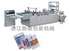 本機適用于PEVA、BOPP、PE、PP等材料的各種包裝袋,采用伺服電機送料,光電跟蹤定長、自動打孔、熱封切、糾邊插風琴底、筒料破口、磁 粉剎車等功能。
