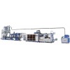 簡介: HF-連線系列成型機是針對高產量、低能耗、衛生標準高、產品尺寸穩定、減少人力資源而開發的新型設備。該系列產品具有高效益、高品質、高可靠性、適合大批量生產,機型采用全新的設計理念及面向未來的控制系列,保證了整個生產過程都具有高效率和穩定性。 應用材料: 特點: ● 生產線自動按比例上料、擠出、壓片、成型、堆疊、廢料粉碎回收等所有工序,全自動完成所有作業; ● 片材寬度可在線調整、無需切邊、利用率高; ● 產品配合7bar高速壓空成型,模內裁切; ● 機械自動進行產品計數、堆疊、符合衛生標準、減少人工; ● 拉伸及片材進料系統都以伺服馬達驅動; ● 高速度:最高達45模次/分鐘; ●快速換模及簡易的維護工作 主要技術參數: