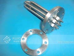 法蘭式電加熱器是由多支加熱管焊接在法蘭上集中加熱。表面功率大,是空氣加熱表面負荷的 2 ~ 4倍。高度密集式、結構緊湊。由于整體短而密集,故穩定性好,安裝無需支架,組合式法蘭式電加熱器大多采用氬弧焊接方式使電熱管與法蘭連接,也可利用緊固裝置的形式,即每支電熱管上焊有緊固件,然后與法蘭蓋采用螺母鎖緊,管子與緊固件采用氬弧焊接,永不泄漏。緊固件密封處采取科學的工藝,單支更換極為方便,大大節約以后的維修成本,主要用于敞開式、封閉式的溶液箱和循環系統中加熱用。