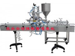 豆豉醬灌裝機/辣椒醬灌裝機-廣州醬料灌裝生產(chǎn)線是星火公司專門針對香辣醬產(chǎn)品進行定量灌裝的一種新型灌裝設(shè)備,在使用上分為自動香辣醬裝機和半自動香辣醬裝機兩種,其中半自動機型需要人工放瓶、可以選擇AUTO灌裝和FOOT灌裝,然后結(jié)合臺式旋蓋機旋蓋、半自動貼標(biāo)機進行貼標(biāo),而豆豉醬灌裝機/辣椒醬灌裝機-廣州醬料灌裝生產(chǎn)線一般是配合自動旋蓋機、漿糊貼標(biāo)機等設(shè)備一起使用,從而構(gòu)成一套灌裝流水線。