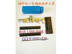 AB咔吧極速快開工具經過改進可適合各種口徑平口AB咔吧鎖,多加了一個螺絲眼,這樣就變成任意換頭,插入正槽這一頭就是正槽工具,插入另一頭就變味反槽工具,,可以用螺絲固定,由原來只有一個正槽和一個反槽改變為有兩個正槽兩個反槽工具,這樣經過改進,工具的耐用率和使用率有多了一倍. 經過改進把手,使工具受力更均勻,工具頭經過淬火熱處理,硬度更高,適合開啟各種口徑平口AB咔吧鎖,工具配10根成品錫紙條