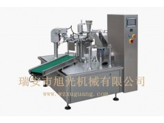 1、塊狀物類:糖果、巧克力、餅干、花生、青豆、開心果、薯片、鍋巴、冰糖、熟食、醬菜、膨化食品等。 2、顆粒類:結精味精、顆粒狀藥品、種子、化學原料、砂糖、雞精、瓜子、果仁、肥料、飼料等。 3、粉劑類:醫藥、食品、化工、面粉、米粉、配料粉等粉狀物料,如:奶粉、豆粉、調味品、味精、調料粉、砂糖、干燥劑等物料的包裝。 4、液體/醬體類:果汁、番茄醬、花生醬、果醬、調味醬、辣椒醬、洗手液、洗滌劑等液體、醬體物料的自動計量包裝。 5、其它可裝袋物料。 二、性能與特點: 1、采用先進的PLC加POD(觸控式螢幕)操作界面,全過程都實現自動化控制,操作方便。 2、自動檢測功能,如不開袋或開袋不完整時,不加料、不熱封,袋可再次利用,且可避免浪費,為用戶節約生產成本。 3、包裝范圍廣泛,通過選擇不同的計量器,可以適用于液體、顆粒、醬體、粉劑、不規則塊狀物等物料的包裝。 4、包裝袋適應范圍廣泛,如:立體袋、平面袋、手提袋、拉鏈袋、四邊封袋、三邊封袋、紙袋、M型袋等復合袋膜制成的預制袋。 5、符合食品加工機械的不衛生標準,機器上與物料或包裝袋接觸均采用不銹鋼或其他符合食品衛生要求的材料加工,保證食品衛生與安全標準,要求抗腐蝕化工產品等的包裝。 6、快速更換包裝袋規格,自動給袋裝置的寬度可通過調節手柄輕松快捷調整,克服了因物料比重變化而致使重量發生變化的缺點。 7、水平送袋方式,儲袋品可以存放更多包裝袋,對成袋質量要求較低,分袋、上袋率高。 8、機器標配檢測裝置,可以檢測機器在沒有包裝物或包裝袋沒有打開的情況下使充填裝置不進行充填,熱封裝置不封口,從而避免浪費包材和原料。 9、變頻調速,本機使用變頻調速裝置,包裝重量隨時無級可調,工作狀態隨時任意變換,操作便捷。 三、工作流程: 1、給袋 2、打碼 3、開袋 4、填充物料、振料 5、熱封 6、整型輸出成品 四、技術參數: 型號: XG6-200 機械工位: 六工位包裝袋材料 復合膜、PE、PP等 包裝袋類型: 四邊封袋、三邊封袋、自立袋、手提袋、拉鏈袋、帶蓋子塑袋、紙袋等復合袋 包裝袋尺寸: W:100-210mm L:100-300mm 機械重量: 1100g 稱重范圍: 5-1000g 包裝速度: ≤50包/分(其速度由物料自身及填充重量決定) 電壓/功率 : 三相380V 50HZ/60HZ 總功率: 2.5Kw 壓縮空氣消耗量: 0.6m3/分鐘 (壓縮空氣由用戶提供) |
