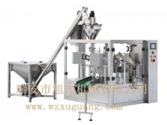 本機型主要由預制袋式包裝機、螺桿計量機、螺桿物料送料機。轉專用吸塵器配料而成。采用智能數控系統觸摸屏人機界面,整機全不銹鋼制作,保證食品衛生與安全標準,要求抗腐蝕化工產品等的包裝。適用于醫藥、食品、化工、面粉、米粉、配料粉等粉狀物料,自動完成送料、自動取袋、打碼、開袋、計量、充填制袋、熱封、成品輸出的全部過程。操作簡單、制袋精準、性能穩定可靠。
