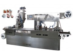 本機適用于果醬,巧克力,黃油,奶精等食品的加熱融化泡罩灌裝封合包裝。從泡罩成型到液體灌裝再復合膜封合,壓痕,到最后的沖裁成品輸出流水線全自動,大大減少人工成本。