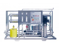 反滲透水處理設備是膜法水處理設備的一種,是當前制備純水及高純水時應用最廣的一種設備。在膜設備當中,反滲透膜可去除離子級雜質,使出水達到純水及高純水的標準。反滲透膜的膜孔徑非常?。▋H為10A左右),因此能夠有效地去除水中的溶解鹽類、膠體、微生物、有機物等(去除率高達97-98%)。系統具有水質好、耗能低、無污染、工藝簡單、操作簡便等優點。